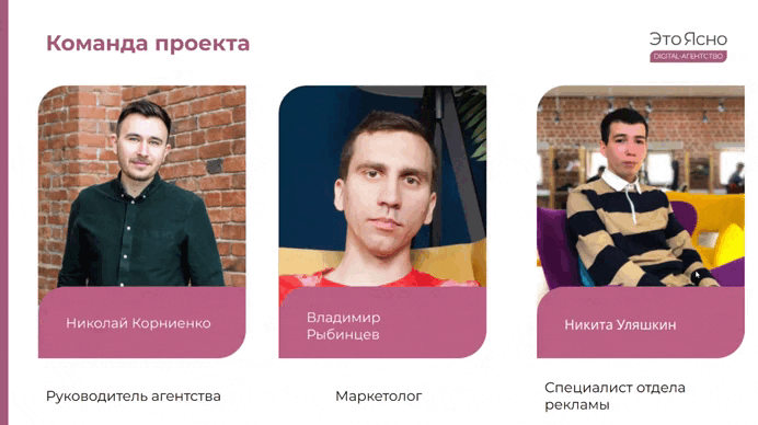 Подводим промежуточные итоги каждую неделю, поэтому вы будете всегда в курсе, какие работы проходят по вашей рекламной кампании. А в конце месяца делаем общие выводы и предлагаем дальнейший план развития.