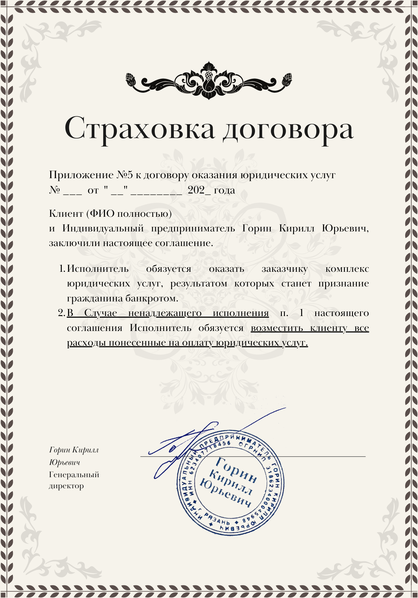 В случае, если по нашей вине долги не будут списаны, мы возместим вам все понесенные расходы. Данный факт зафиксирован в договоре дополнительным страхованием.