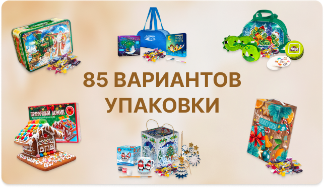 У нас есть два варианта наполнения под разный бюджет, которые с заботой подобраны для каждого подарка. Мы используем только свежие сладости, которые нашли отклик у наших покупателей.